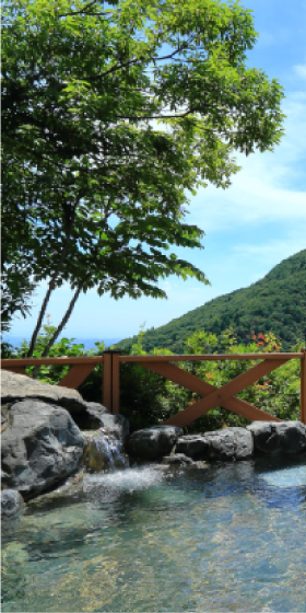 周囲は雄大なる鈴鹿山脈の自然に囲まれ、遠方には四日市や名古屋市街が一望できる露天風呂。絶景を眺めながら、しばし時間を忘れるひとときです。